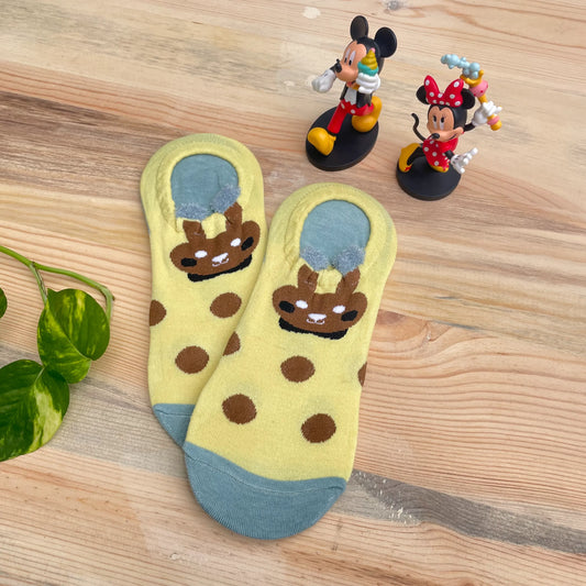 Cute Giraffe No-Show Socks – Yellow Polka Dot Design | Lazzy Socks India