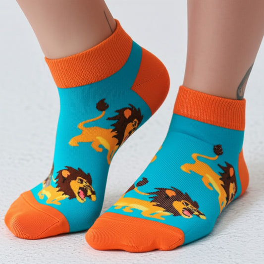Fierce Lion Ankle Socks – Bold Animal Print | Lazzy Socks India
