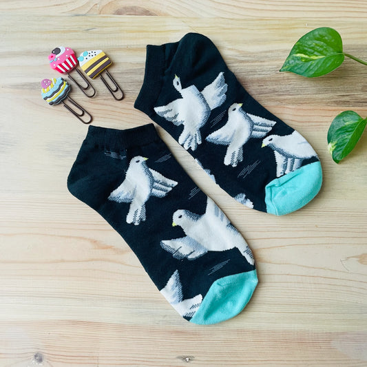 Flying Dove Ankle Socks – Elegant Bird Print | Lazzy Socks India