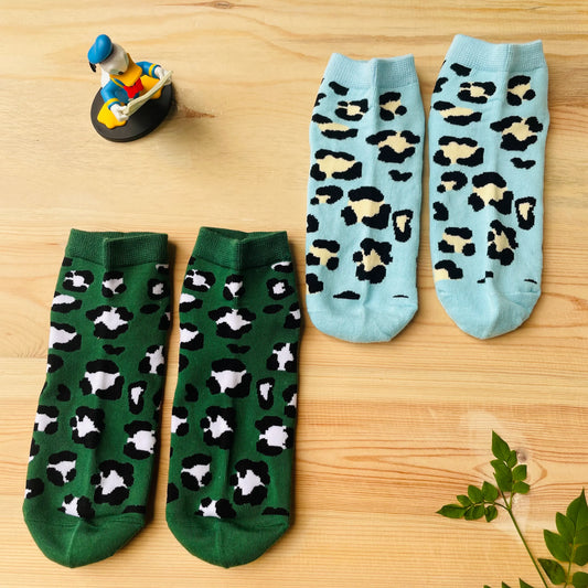 Wild Pop Leopard Ankle Socks (Pack of 2) | Lazzy Socks India