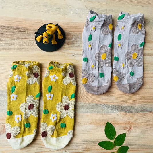 Sunshine & Mist Daisy Ankle Socks (Pack of 2) | Lazzy Socks India