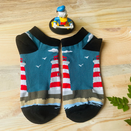 Seaside Lighthouse Ankle Socks – Scenic Nautical Design | Lazzy Socks India