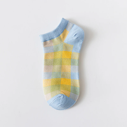 Pastel Checks Blue-Yellow Unisex Ankle Socks