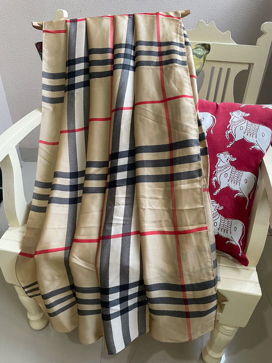 Luxury Champagne, Black & Red Plaid Silk-Feel Satin Scarf – 90 x 180 cm