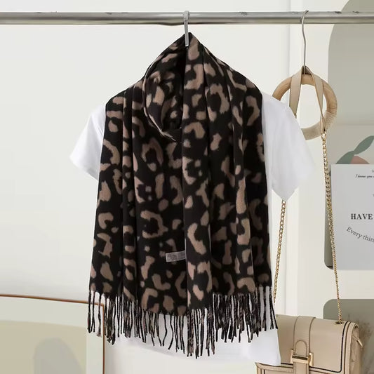 Luxury Soft-Touch Leopard Print Winter Scarf with Fringe – 75 x 180 cm